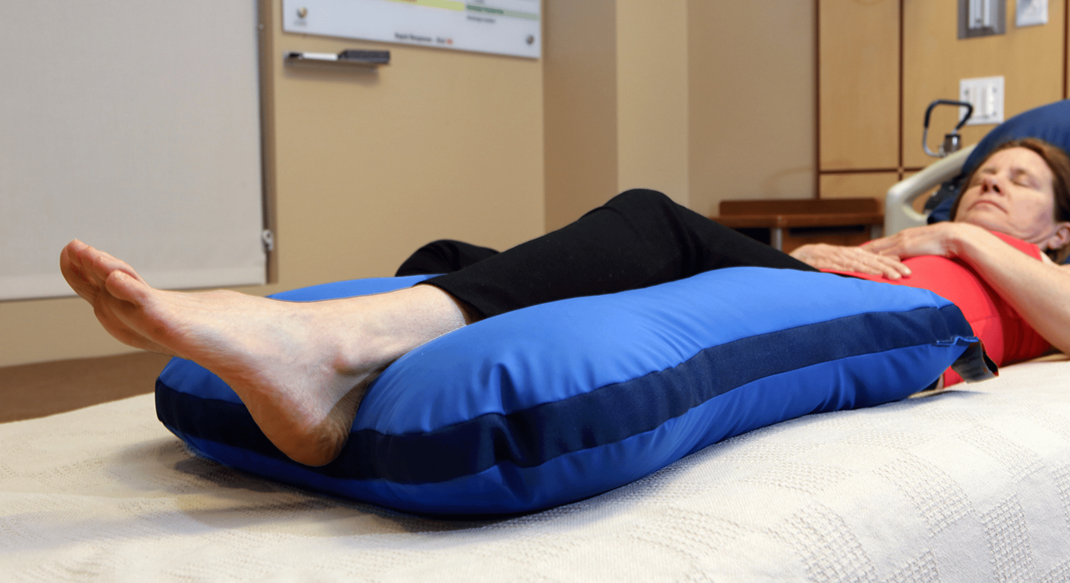 - Set underneath legs to float heels when leg elevation is desired. (Please see our Bedsore Rescue Footbed heel floater when low lift heel floatation is needed to improve blood flow and reduce ankle dangling)